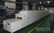 2、外形尺寸(約):總長(zhǎng)24000mm*總高1690mm*總寬1220mm,地面到網(wǎng)帶的高度為850mm,爐體內(nèi)進(jìn)料高度為150mm;烘干部分總長(zhǎng)14000mm,分7段獨(dú)立控溫(每段4個(gè)測(cè)溫?zé)犭娕迹慷?000mm。冷卻段長(zhǎng)4000mm,UV預(yù)留區(qū)長(zhǎng)2000mm,前后緩沖區(qū)各長(zhǎng)500mm,進(jìn)出料部分長(zhǎng)1500mm, 爐體前后裝有急停開(kāi)關(guān)。
